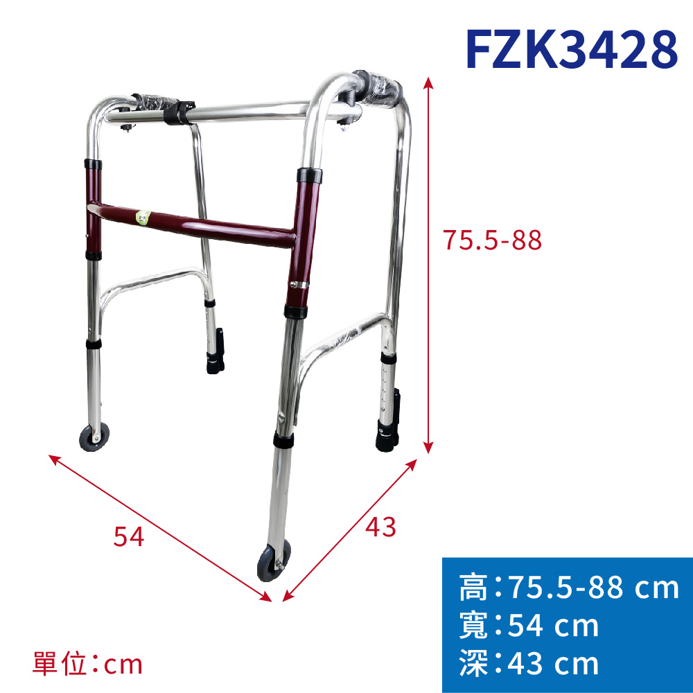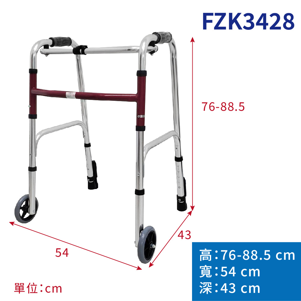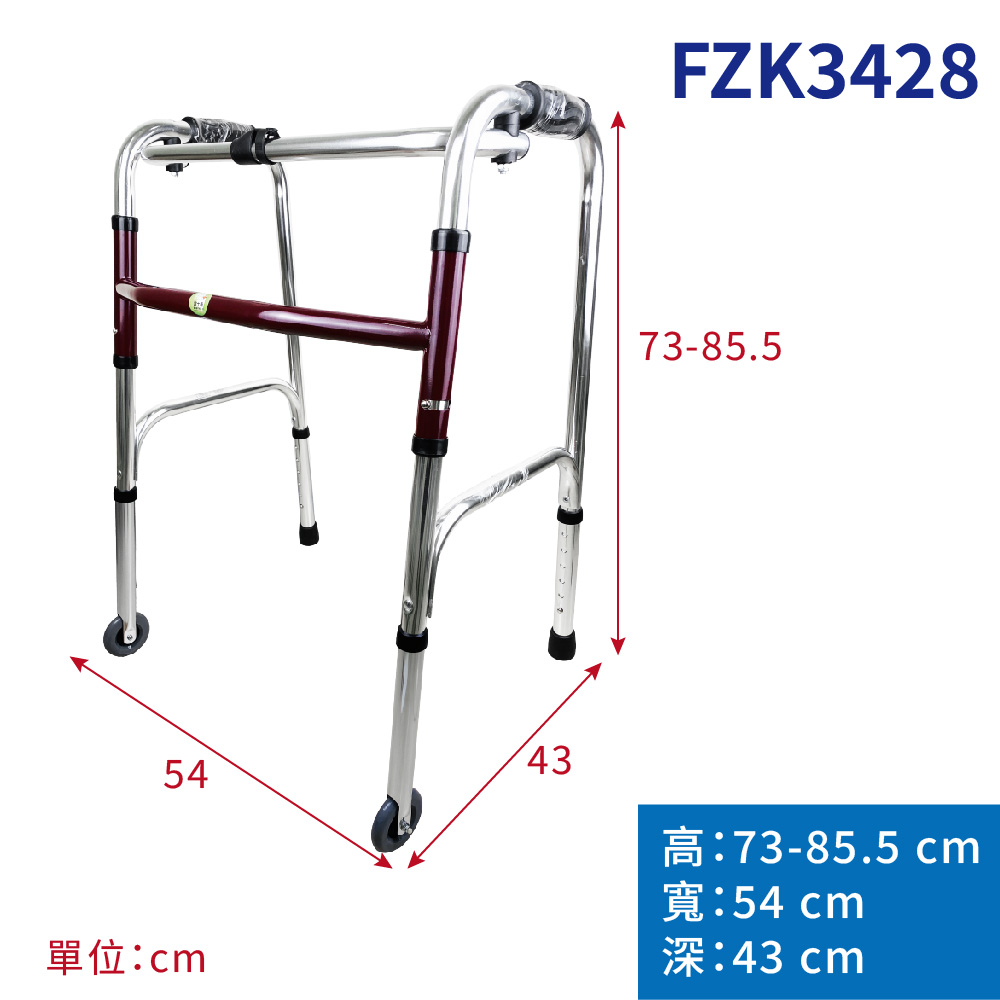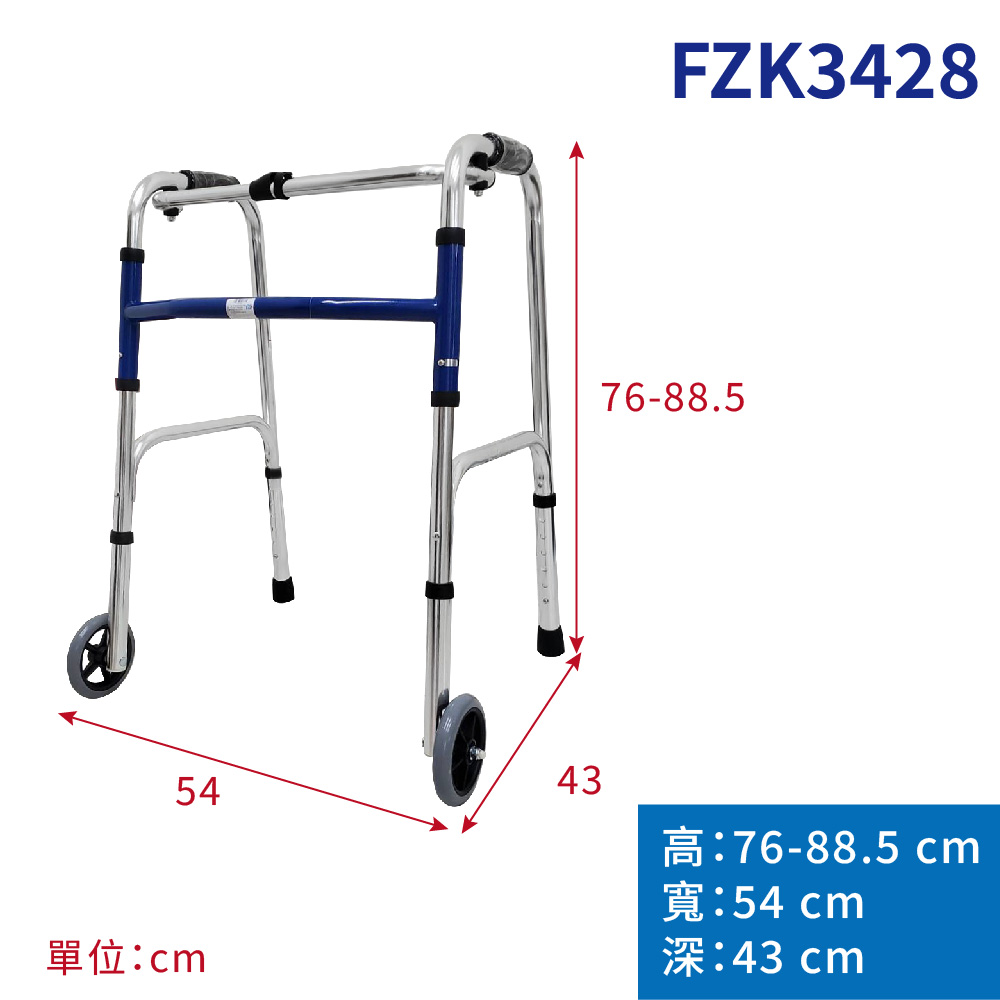 【免運費】鋁合金助行器 FZK-3428 有輪助行器 二階式助行器 輔具 兩段式 ㄇ字型助行器 醫療級助行器 復健用品 帶輪型助行器 FZK3428